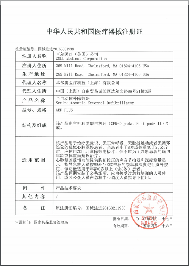| 容量: | 待机5年或300次电击,当红色X出现时,表示能量还剩100次电击 |
